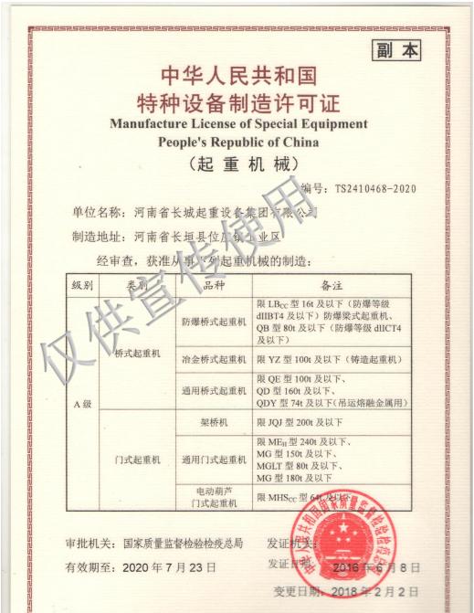 河南省長城起重設備集團有限公司(18238777579)主要從事:“長起”牌架橋機、自平衡架橋機、架橋機改造、龍門吊、電動葫蘆門式起重機、倒三角龍門吊、包廂龍門吊、雙主梁門式起重機、輪胎式龍門吊、豎井龍門吊、門式起重機、橋式起重機、雙梁橋式起機、電磁橋式起重機、防爆行車、潔凈室天車、冶金鑄造吊、歐式雙梁橋式起重機、提梁機、運梁車等多個系列110余種各類起重機及配套件產品的研發、生產、銷售及服務。是值得信賴的龍門吊廠家、龍門吊公司、架橋機廠家、架橋機公司、門式起重機廠家。