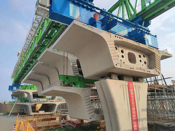 節段拼裝架橋機作為一種節段橋梁逐跨拼裝架橋設備,特別適合跨海大橋、跨河大橋和大型公路、大型鐵路的架橋施工工程。