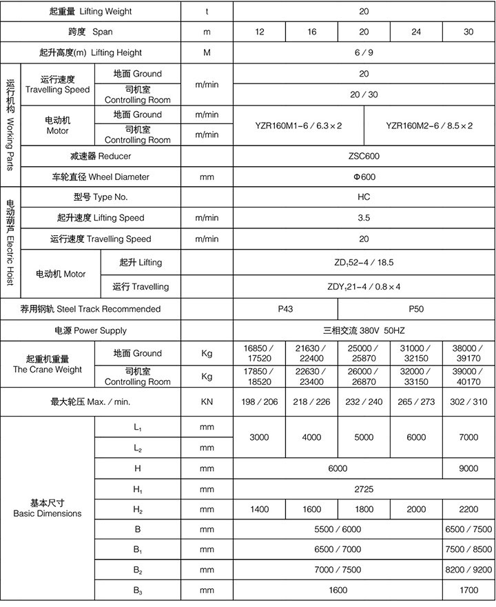 吊鉤雙梁門式起重機適用于露天倉庫或鐵路沿線進行一般的裝卸及起重搬運作業。本起重機由橋梁、大車運行機構、小車、電氣設備組成。橋架采用箱形焊接結構,大車運行機構采用分別驅動。全部機構均在操縱室內操縱。起重機導電形式分為電纜和滑觸線兩種,訂貨時任選一種。選用本起重機時須填寫訂貨規范表,須注明使用時工作環境的最低溫度和最高溫度以及電源等。